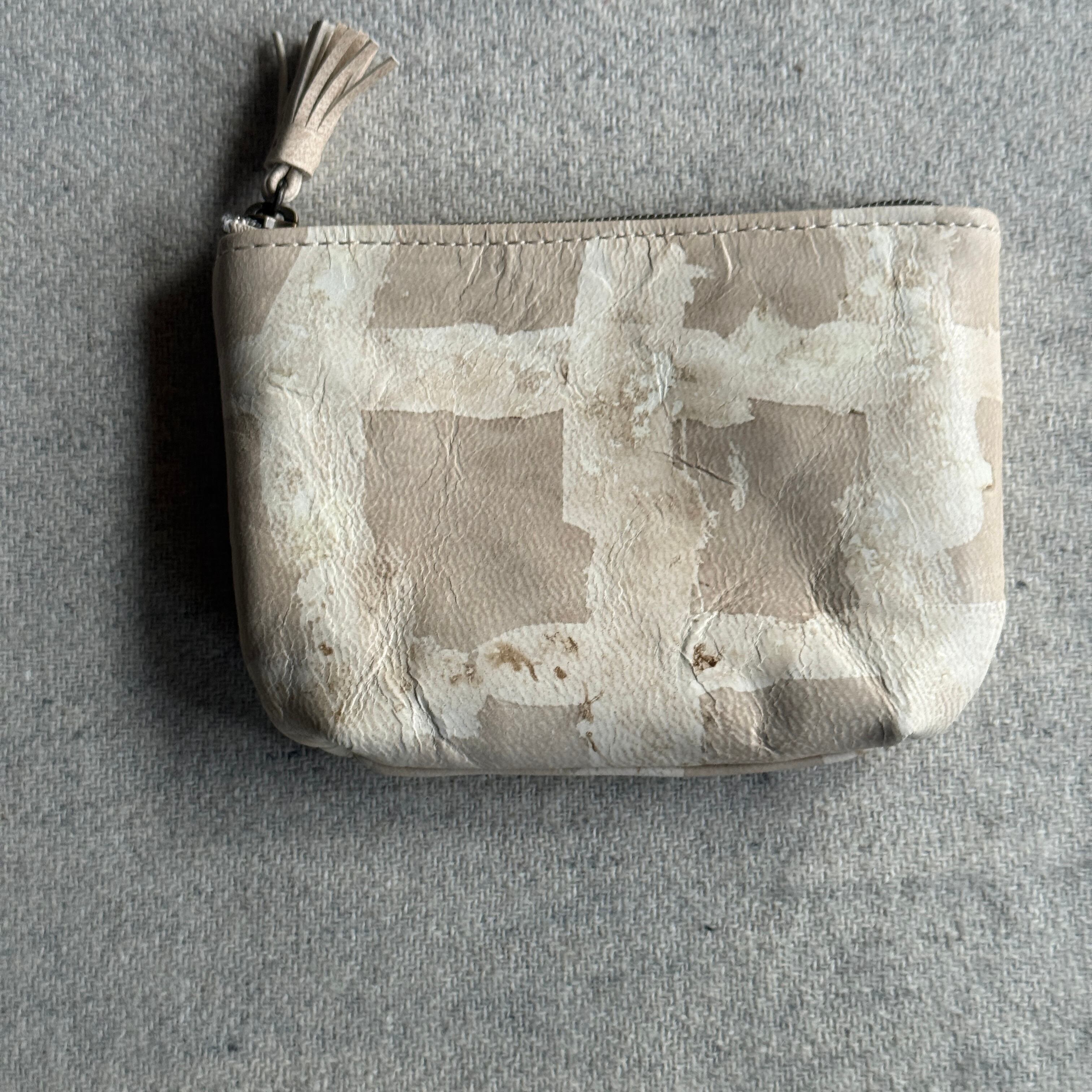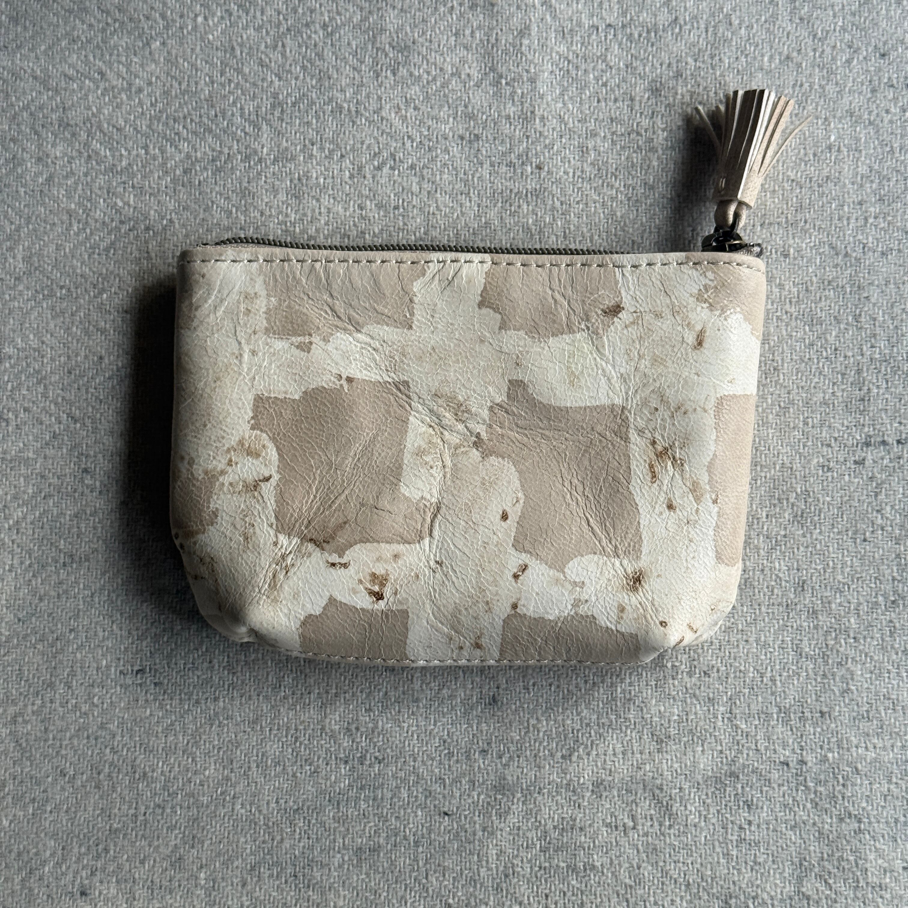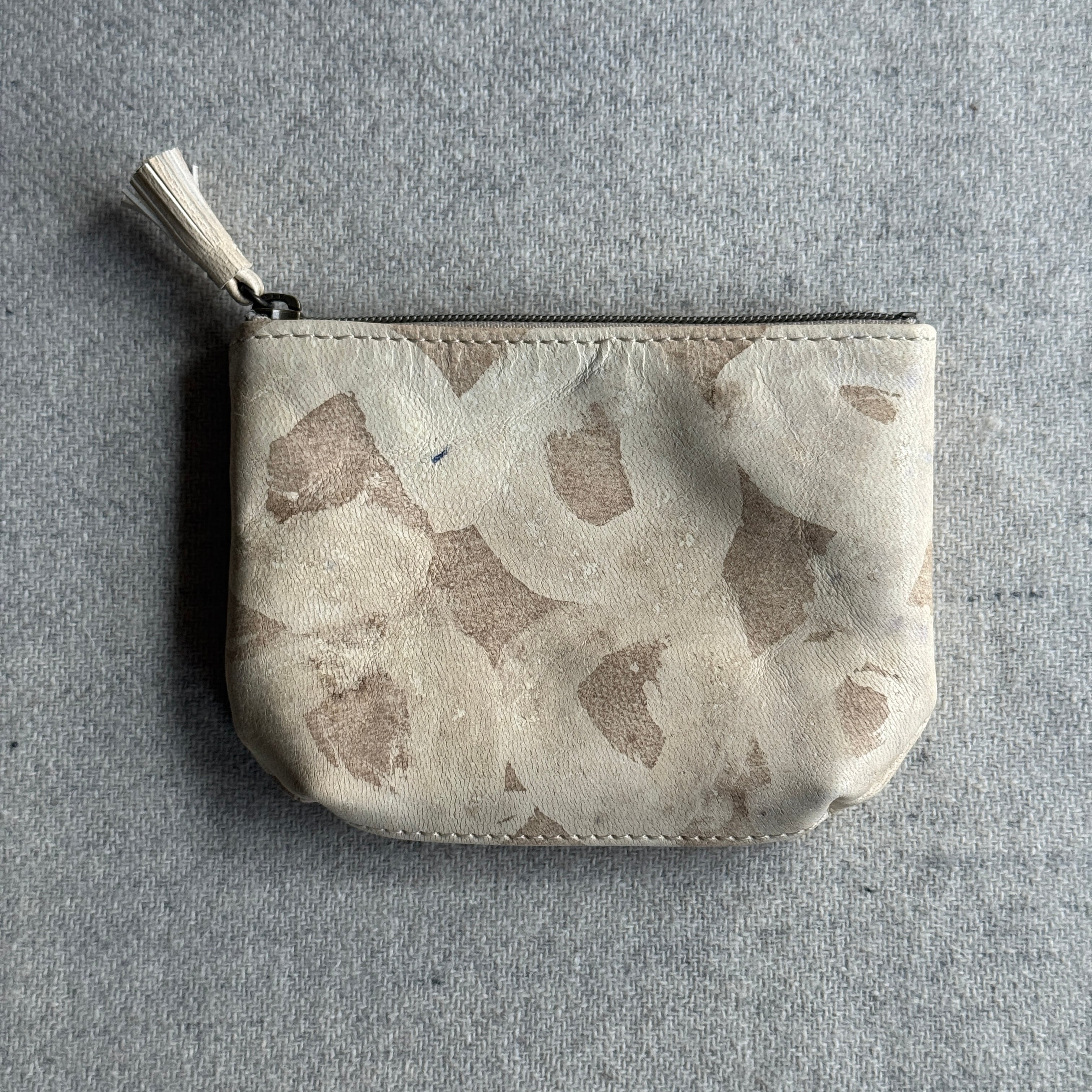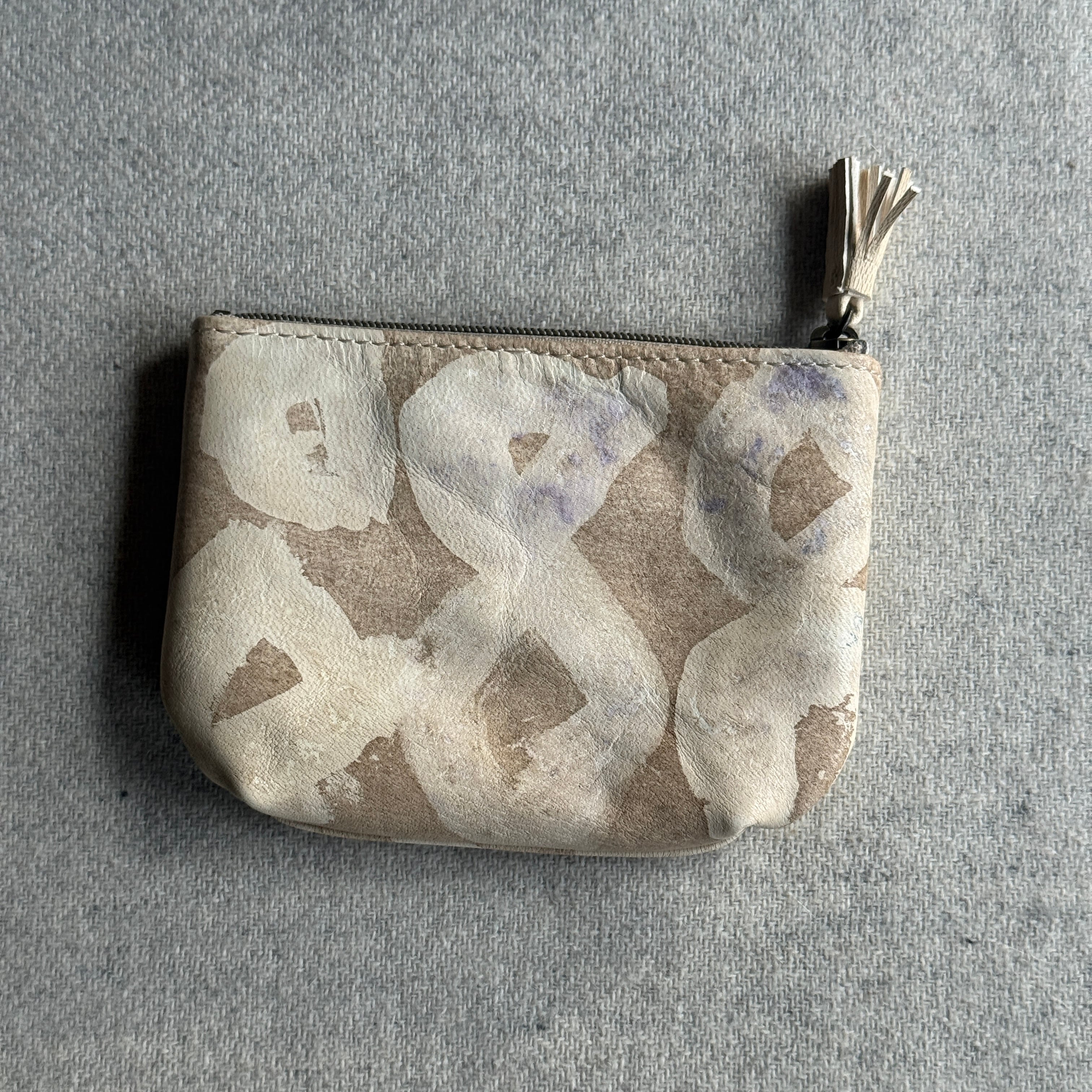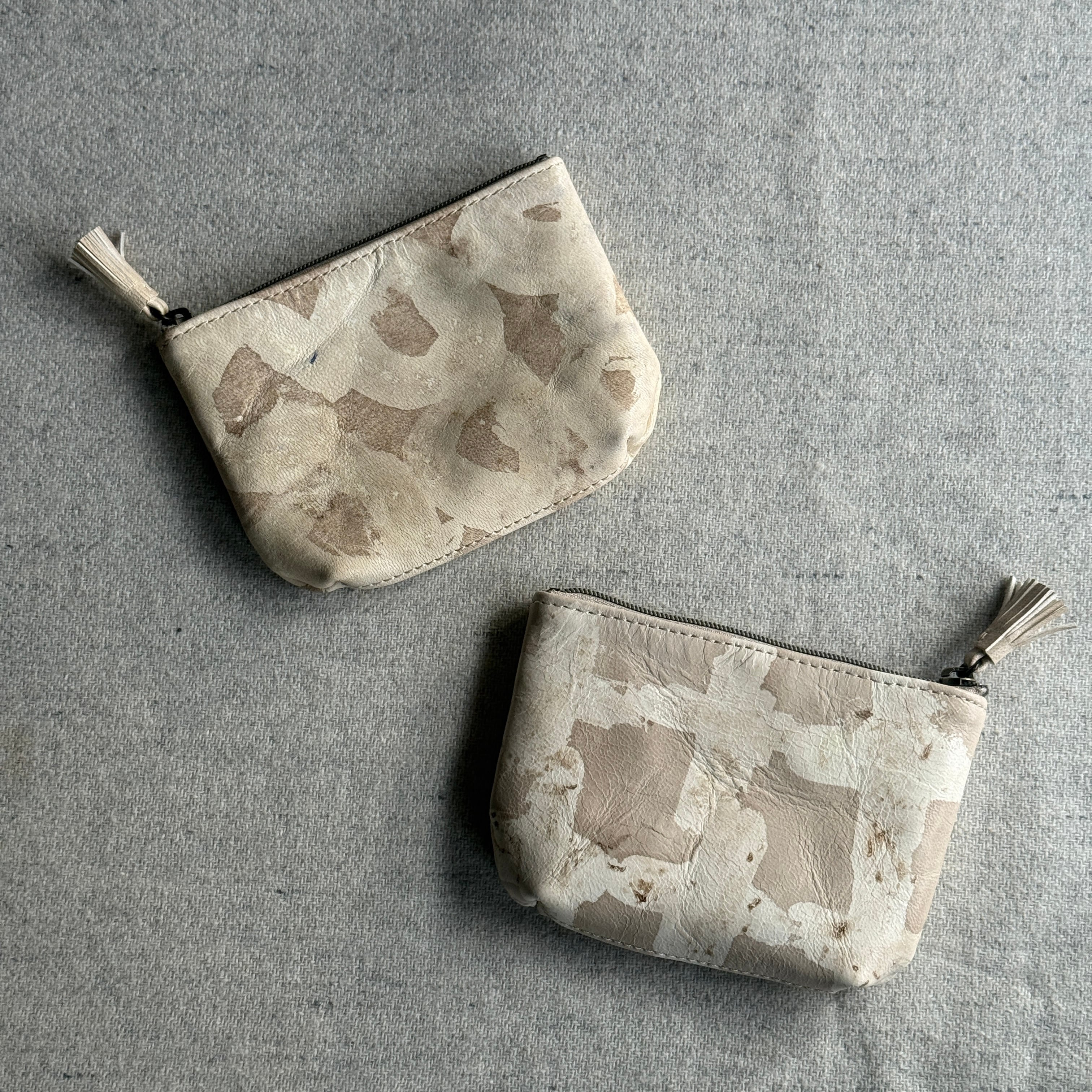 模様は季節ごとの花弁や、毎年種を継いで育てる藍の生葉を革に直接擦りつけることで描いています。